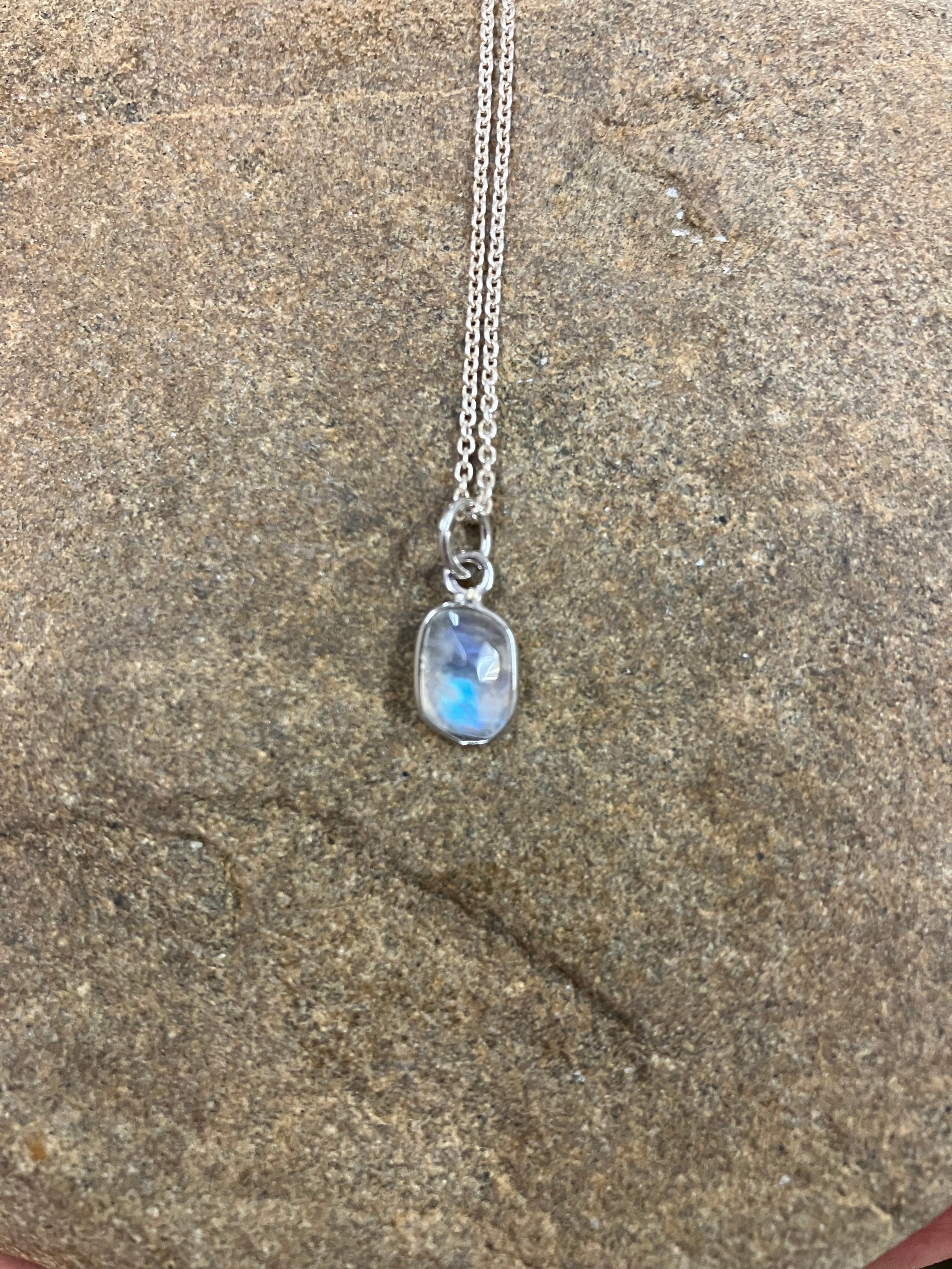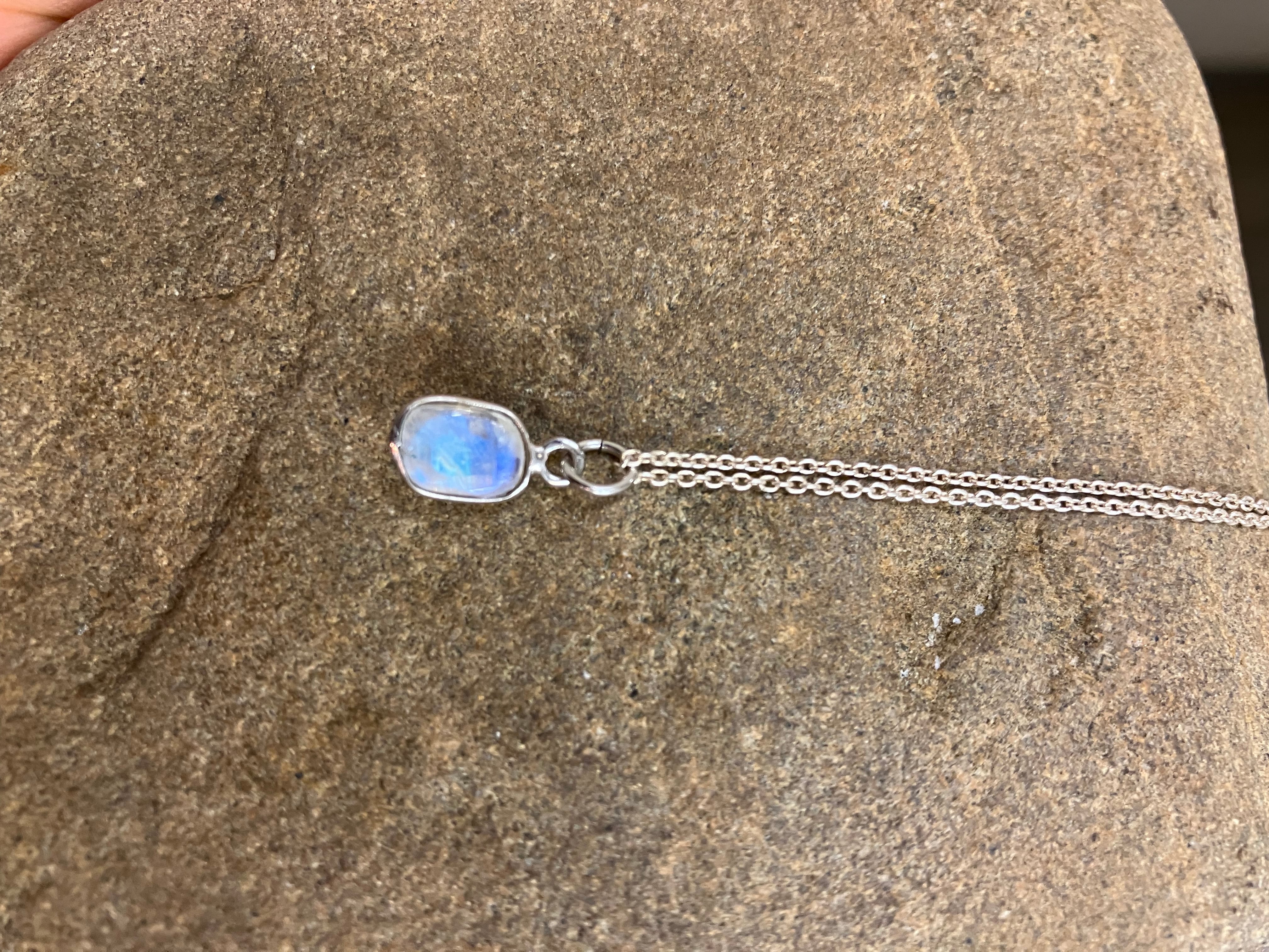 ブルーのシラーが美しいホワイトラブラドライトのネックレスです。