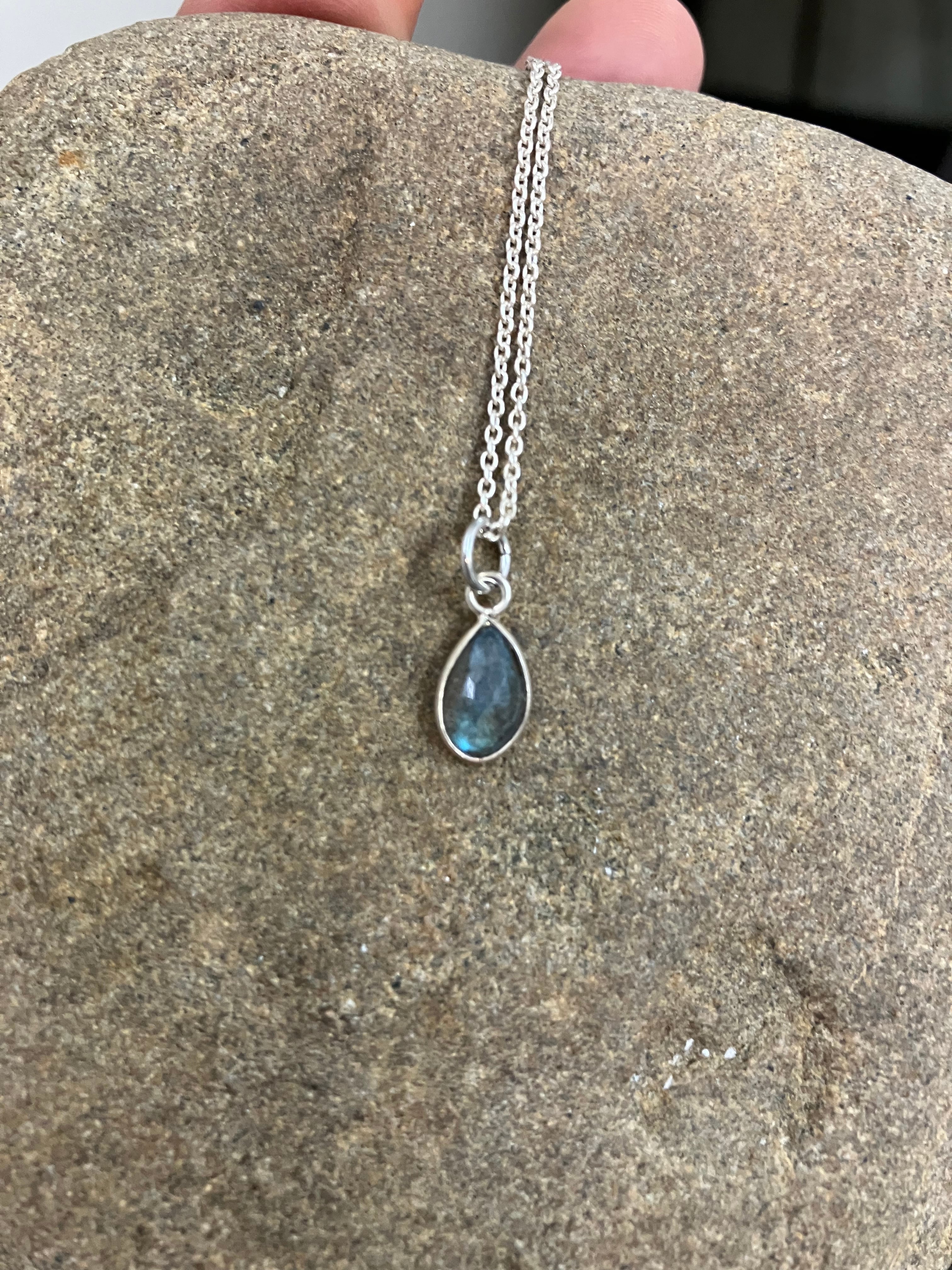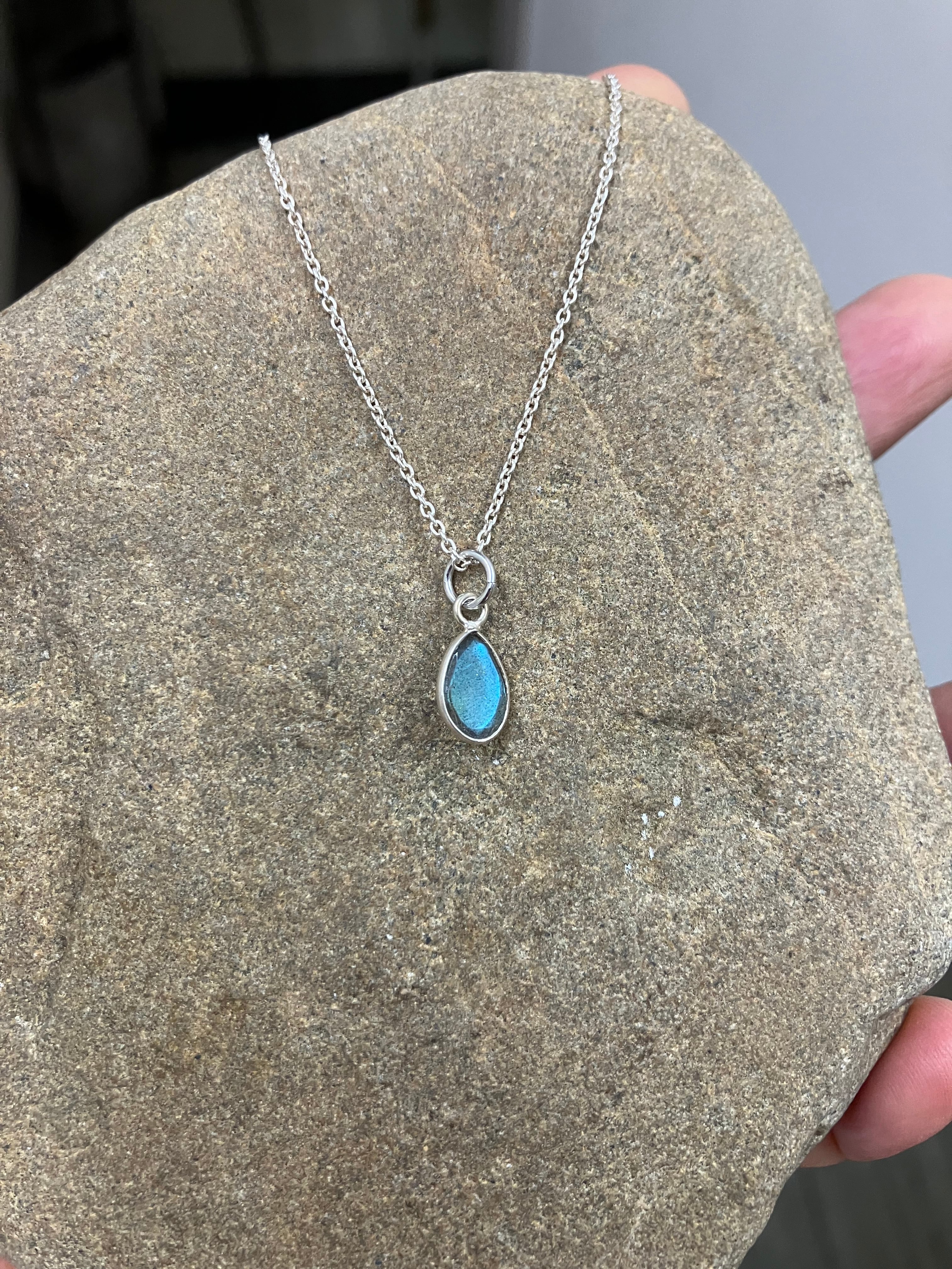 ブルーのシラーが美しいラブラドライトのネックレスです。リバーシブル