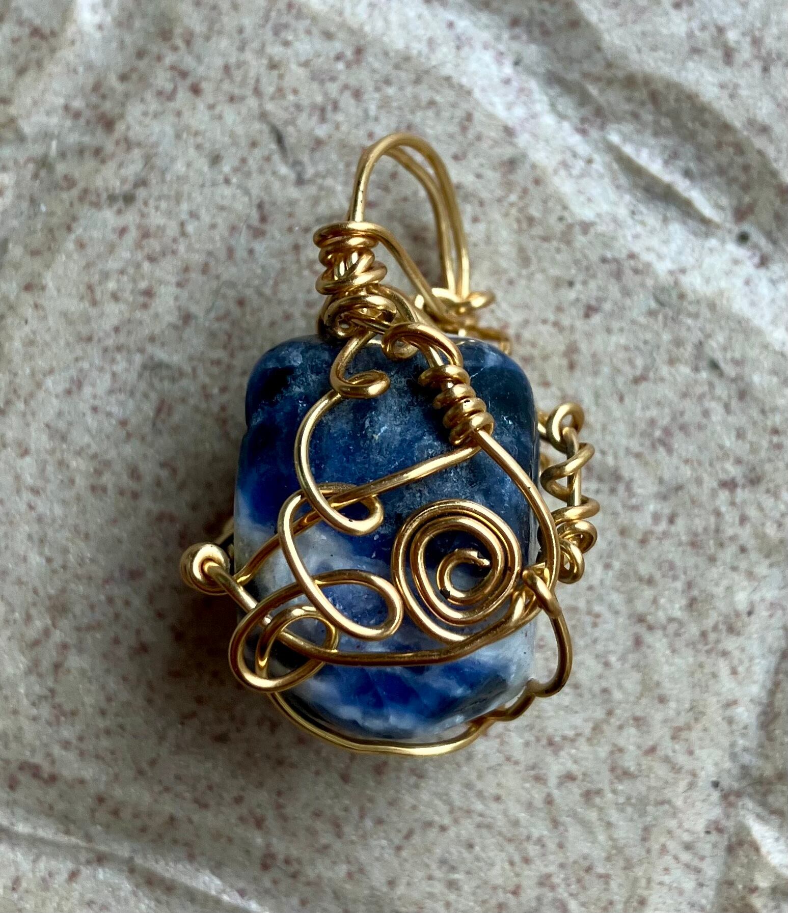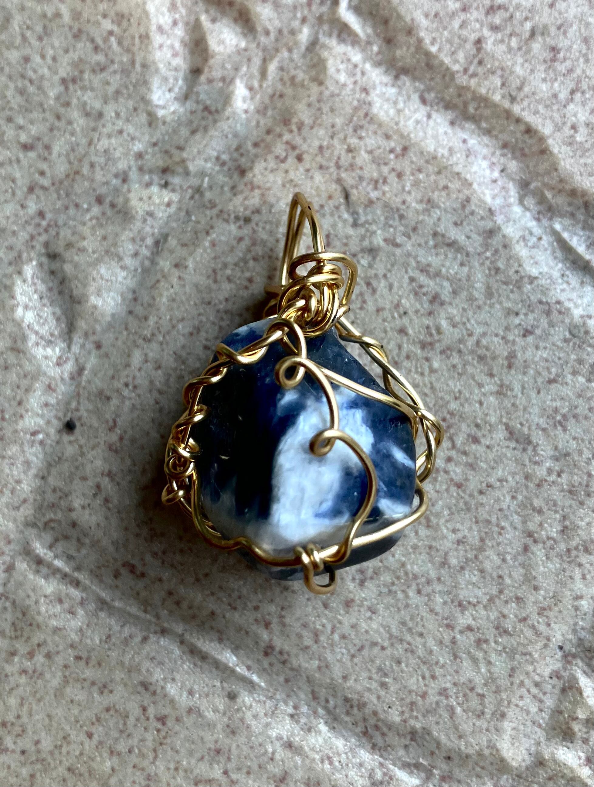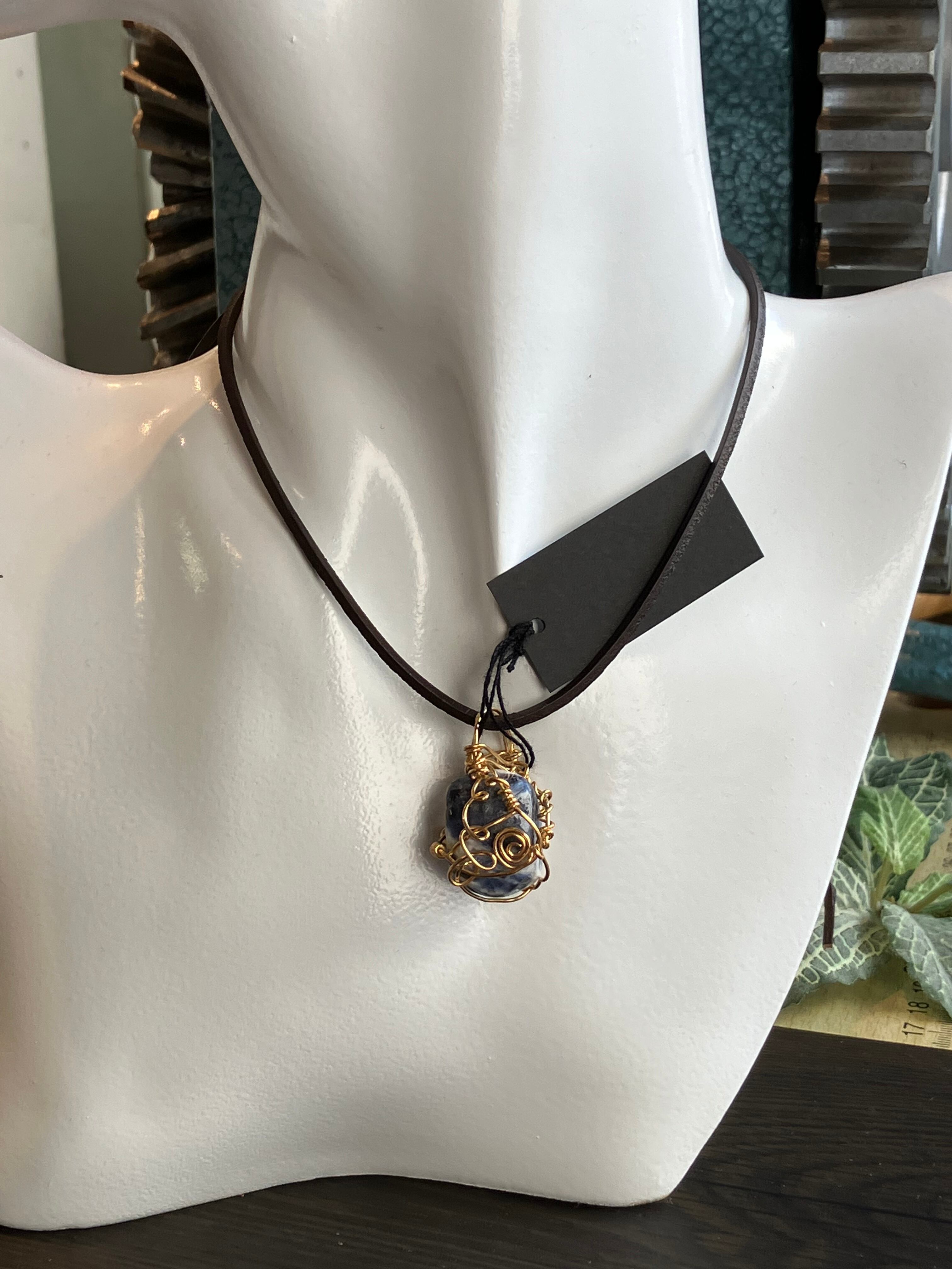 素材 : ソーダライト、アーティスティックワイヤー、革紐 こげ茶 、ビーズ